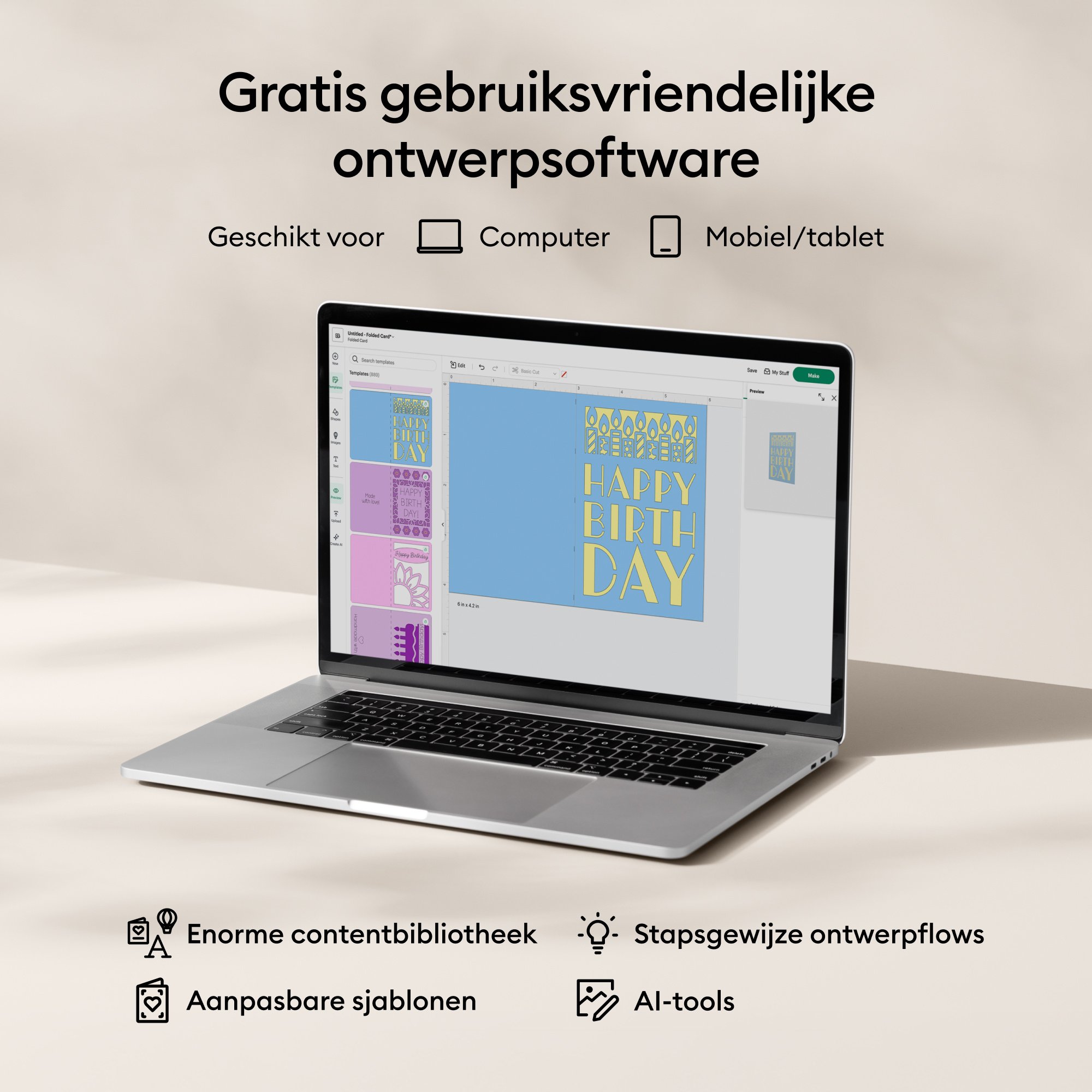 - Eenvoudige bediening via Cricut Design Space