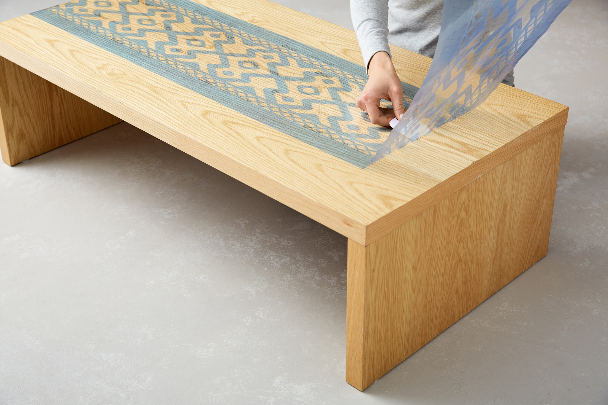 - Doorzichtig (licht blauw), stencil hecht op hout, canvas, plastic, papier en meer