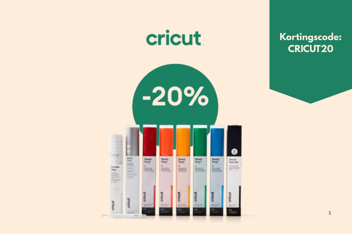 Tot en met 21 februari ontvang je 20% korting op alle materialen en accessoires van het merk Cricut. Gebruik de kortingscode CRICUT20 tijdens het afrekenen.